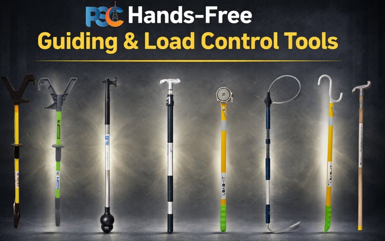 Reachable-distance hands-free guiding and positioning tools engineered to eliminate hand exposure during suspended load alignment, tagline retrieval, and controlled positioning.